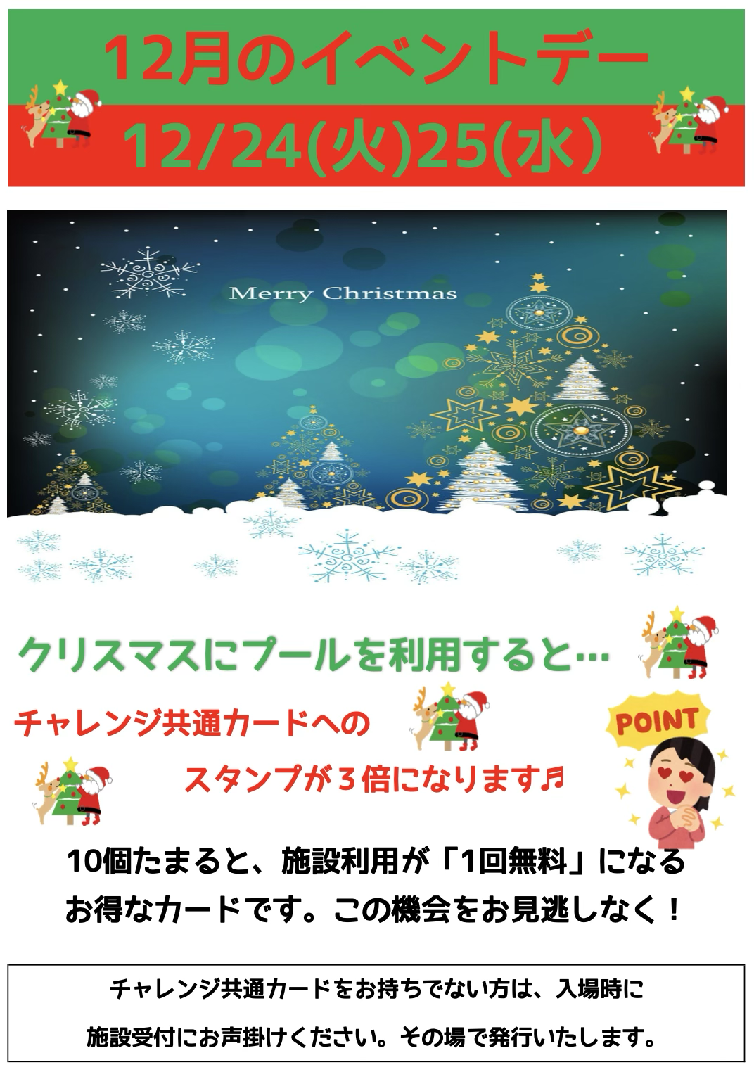 「クリスマス」ポイント3倍デー(12/24・25) | 小美玉市 小川海洋センター