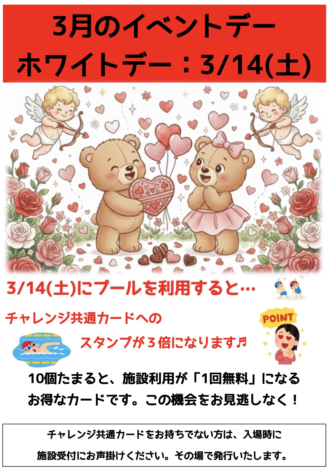 「ホワイトデー」ポイント3倍デー(3/14) | 小美玉市 小川海洋センター