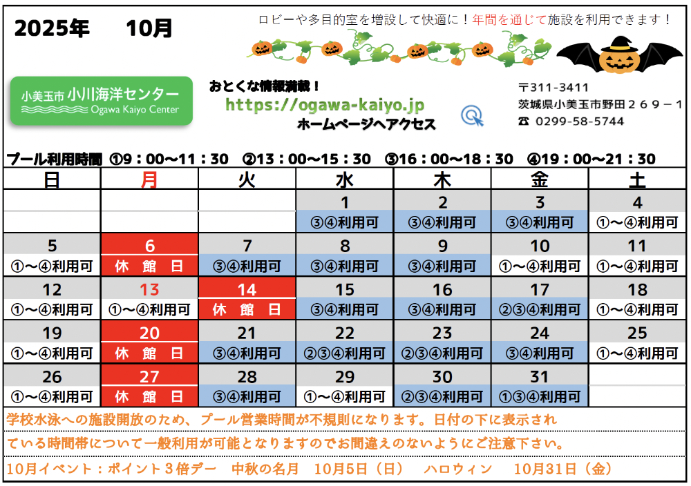 スケジュール | 小美玉市 小川海洋センター